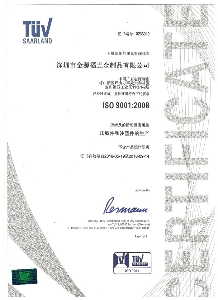 深圳市金源福五金制品有限公司成立于2003年。公司擁有8000多平方米生產(chǎn)廠地、開(kāi)發(fā)與管理精英人才、技術(shù)專(zhuān)業(yè)、設(shè)備精良、交通便利、服務(wù)周全、具體設(shè)計(jì)、開(kāi)發(fā)、制模、出樣、生產(chǎn)到成品出貨一體化模式生產(chǎn)廠家。已通過(guò)ISO9001:2008ISO1440/TS16949:2009國(guó)際質(zhì)量體系認(rèn)證。專(zhuān)業(yè)生產(chǎn)鋅合金壓鑄、鋁合金壓鑄產(chǎn)品、汽車(chē)配件、汽車(chē)后視鏡支架、車(chē)載導(dǎo)航散熱器、LED散熱器、LED燈罩、數(shù)碼電子五金結(jié)構(gòu)件、家具五金裝飾件、標(biāo)牌(LOGO)等五金壓鑄產(chǎn)品。